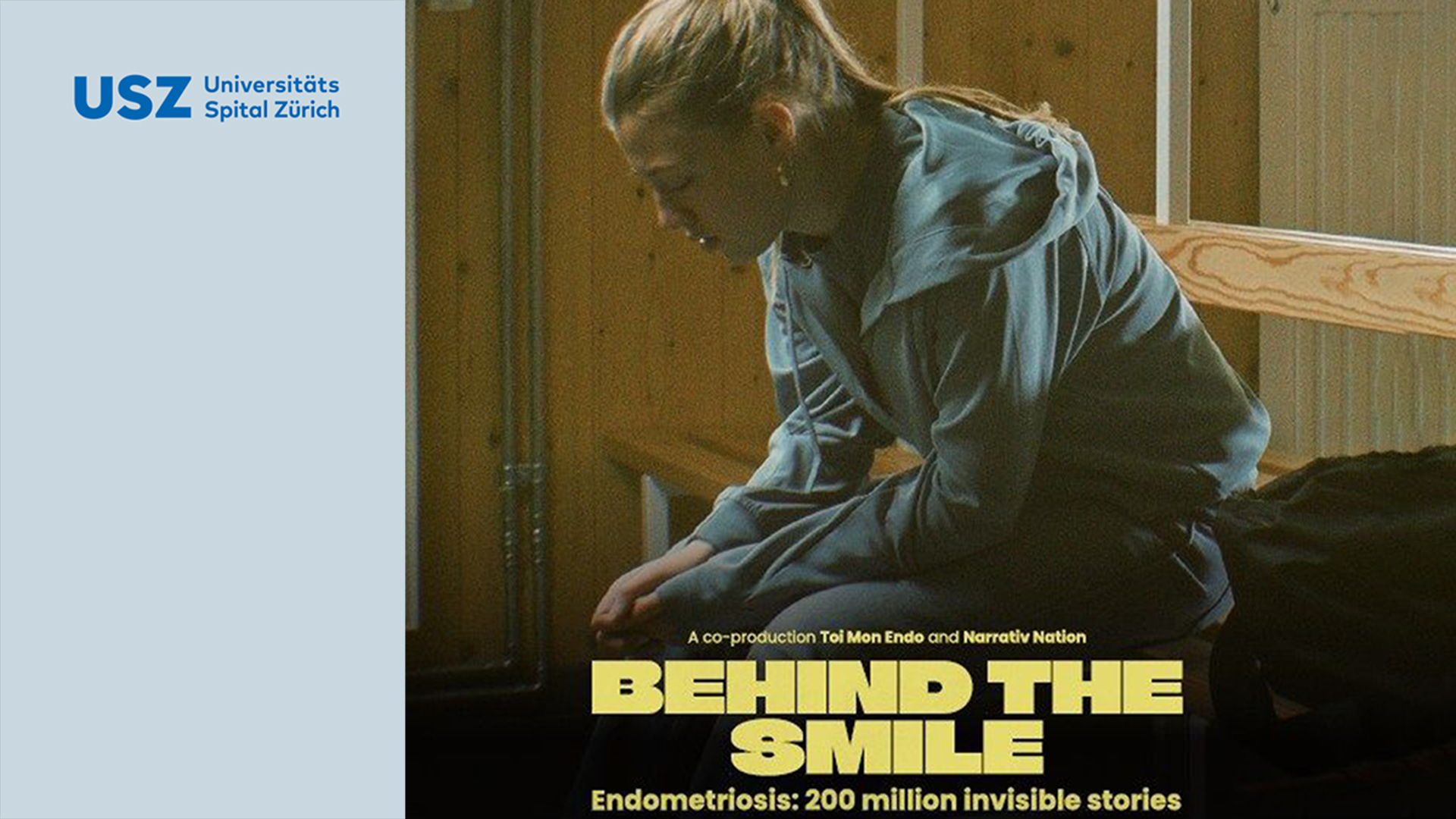 Das USZ zeigt die 30-minütige Docu-Fiction «Derrière le Sourire – Behind the Smile», welche die oft unsichtbare Realität von Betroffenen einfühlsam und eindrucksvoll sichtbar macht. Der Film wird zeitgleich mit deutschen und englischen Untertiteln vorgeführt.